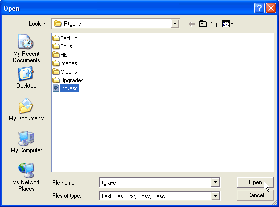 Click the file you wish to import, rtg.asc, then click Open.