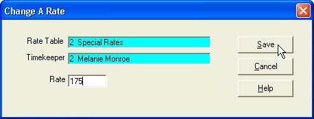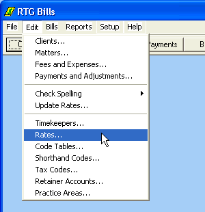 To change the billing rate for a timekeeper, choose Edit > Rates from the menu.