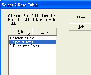 To modify a rate table, click on the name of the rate table and then click Edit.
