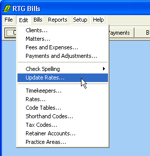 Do you want the new rate to be used on fees that you have already entered? RTG Bills makes it easy to do that.
